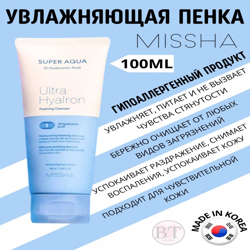 "Missha Super Aqua Ultra Hyalron Cleansing Foam" namlantiruvchi ko‘pigi tarkibida 10 turdagi gialuron kislota majmuasi mavjud!