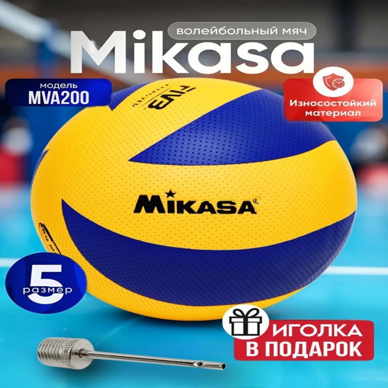 5-sonli Mikasa MVA200 voleybol to'pi boshlang'ich sportchilar va havaskor musobaqalar uchun, shuningdek plyaj voleyboli uchun juda mos keladi. Sport to'pi FIVB (xalqaro voleybol federatsiyasi) ning rasmiy parametrlariga to'liq mos keladi. To'pning shinasi yuqori sifatli sintetik charmdan, 8 ta yopishtirilgan diagonal paneldan ko'k-sariq rangga ega.